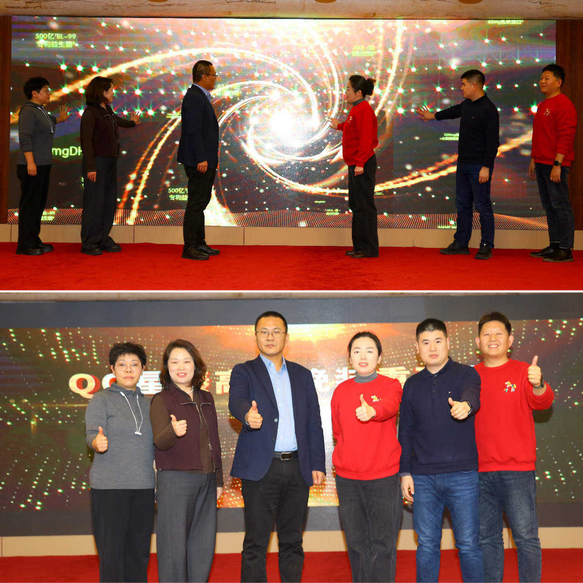 QQ 星新品启动仪式环节,杜菲菲、邢兰兰、蔺泽恒、荀成、马庆山、王林艳等双方高管共同上台,携手完成启动仪式。